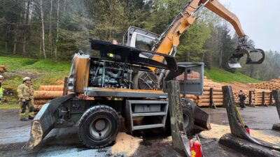 Am Montagmorgen wurden die Feuerwehren Wolfurt und Schwarzach zu einem Baggerbrand in der Schwarzach-Tobelstraße alarmiert. Bei Eintreffen der Einsatzkräfte war das Feuer bereits durch Mitarbeitende vor Ort mittels…