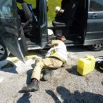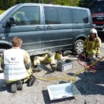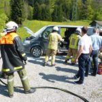 In der Hofsteigstraße kam es bei einem PKW zu einem Dieselaustritt mit einer starken Rauchentwicklung und einem kleinem Brand. Zwei benachbarte Feuerwehrmänner konnten den Brand mit Feuerlöschern löschen. Die Feuerwehr Wolfurt hat zuerst den Brandschutz sichergestellt. Als weitere Maßnahme wurde die Batterie abgeklemmt und dem Austitt von Diesel auf die Spur gegangen. Wir haben das Fahrzeug mittels Hebekissen angehoben, damit der Austrittsgrund festgestellt werden konnte. Nachdem das Leck provisorisch abgedichtet wurde, war der Einsatz für uns erledigt.