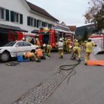 Für die Feuerwehr Wolfurt ging am 25. Oktober 2014 das Übungsjahr zu Ende. Die letzte Übung für dieses Jahr handelte von einem Verkehrsunfall mit mehreren Beteiligten. Ein LKW-Fahrer übersah beim Einfahren in die Bregenzerstraße einen Radfahrer und erwischte ihn frontal, der daraufhin unter dem LKW eingeklemmt wurde. Ein PKW, der aufgrund des Unfalls ein Überholmanöver durchführte, fuhr in ein vor ihm fahrenden PKW, der dadurch einen weiteren Radfahrer traf. Ein dritter PKW touchierte den LKW seitlich. Um die Radfahrer zu retten setzten die Mannschaften des LF, TLF und LFB Hebekissen ein. Die Fahrzeuginsassen in zwei der drei PKW mussten mittels hydraulischem Rettungsgerät befreit werden. Die Mitglieder der Feuerwehr Wolfurt konnten diese Übung sehr schnell und sicher abwickeln.