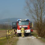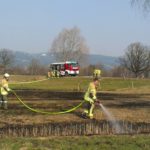 Aus ungeklärter Ursache entzündete sich ein Teil eines Ackers. Ein anwesender Spaziergänger rief umgehend die Feuerwehr. Unsere Tätigkeit bestand darin, das in Brand geratene Gras abzulöschen und angrenzende Wiesenteile zu befeuchten. Der Brand zerstörte rund 2.000m² Ackerfläche.