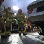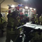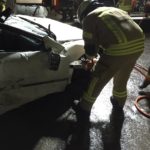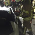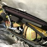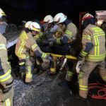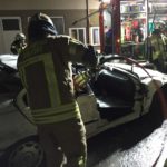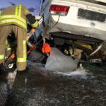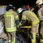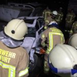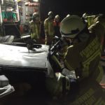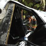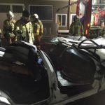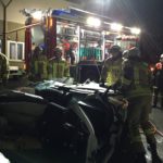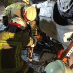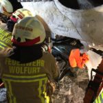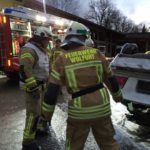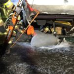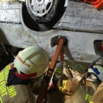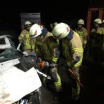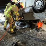 • PKW auf Seite, Person eingeklemmt, Treibstoff rinnt aus