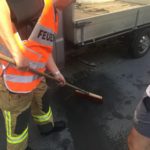 Die Wolfurter Feuerwehr rückte bei hohen Sommertemperaturen mit dem RLF zu einem Einsatz in der Kreuzstraße aus. Aufgrund eines umgefallenen Ölbehälters auf einem Pritschenwagen gerieten mehrere Liter Öl auf die Fahrbahn. Die Ölflecken wurden mit Bindemittel und Wasser gebunden und entfernt.