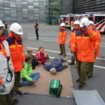 Die Feuerwehrjugend aus den Hofsteigwehren hatte am 1. Oktober ein straffes Programm. Um 14:00 Uhr ging es mit der Prüfung zu den Spezialabzeichen los. Bei den Spezialabzeichen handelt es sich um Abzeichen, welche an der Uniform getragen werden. Jedes halbe Jahr kann zu einer Prüfung aus verschiedenen Themenbereichen angetreten werden. Bei Erfolg gibt es eine Erweiterung auf dem Abzeichen, womit dann sichtbar ist, welche Themenbereiche bestanden wurden. Bei der Feuerwehrjugend Wolfurt traten Tina Riemer, Leonie Mangele, Kevin Hopfner, Kilian Langer, Ben Rohner und Benjamin Böhler an. Erfreulicherweise konnten alle Feuerwehrjugendmitglieder ihren absolvierten Themenbereich bestehen und erhielten den Teil des Abzeichens. Für die Verleihung der Abzeichen war noch kurz Zeit, doch dann ging es um 15:00 Uhr gleich mit der Kreisübung weiter. Die Übung war auf zwei Einsatzstellen ausgearbeitet. Die erste Übung war ein Brand im Dachbereich, welcher von der Feuerwehrjugend Schwarzach zu bekämpfen war. Die Feuerwehrjugend Wolfurt hatte als Aufgabe eine Personenrettung durchzuführen und eine Zubringerleitung zu erstellen. Es mussten vier Personen über ein Stiegenhaus zum Verletztensammelplatz gebracht werden. Drei Personen waren gehfähig, eine Person musste mittels Trage über das Stiegenhaus gerettet werden. Wir bauten sogleich den Verletztensammelplatz auf und kümmerten uns um die Verletzten. Zusätzlich wurde von uns eine Zubringerleitung mit zwei B-Schläuchen erstellt. Da die Zubringerleitung über eine Straße verlief, wurden auch die Schlauchbrücken eingesetzt.