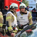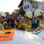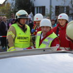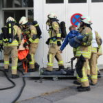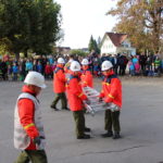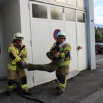 Um 15:30 wurde die Abschlussübung durch die Feuerwehrjugend eröffnet. Ihre Aufgabe bestand darin mittels Schleifkorbtrage eine Person aus dem ersten Obergeschoss liegend zu retten. Diese Rettungsmöglichkeit wird in schwer zugänglichen Situation wo mit einem Hubrettungsgerät nicht gearbeitet werden kann angewendet. Die Feuerwehrjugend bewies dabei mit Bravour Ihr Können sowie Ihre Schwindelfreiheit.