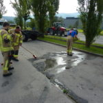 Es gab auf einem Parkplatz einen Austritt von Hydrauliköl. Die Feuerwehr Wolfurt rückte mit zwei Fahrzeugen aus und konnte mittels Öl-Bindemittel und Bioversal das ausgelaufene Betriebsmittel binden und entfernen.