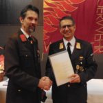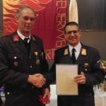 ABI Martin Lecher nahm  im Namen des Landes und Landesfeuerwehrverbandes die Ehrung vor und verlieh den Jubilaren die Feuerwehrmedaillen in Silber bzw. Gold.