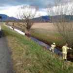 Mitarbeiter des Landesstraßenbauamts entdeckten auf der Wasseroberfläche des Landgrabens eine schimmernde Flüssigkeit. Da das Ausmaß größer erschien war ein Eingreifen der Feuerwehr dringend notwendig. Mithilfe mehrerer Ölsperren konnte ein weiterfließen der unklaren Substanz vorerst eingedämmt werden. Zusammen mit Mitarbeitern des Landeswasserbauamts wurde versucht, die Ursache zu finden. Mit Ölbindemittel und Bindevlies konnte das aufgefangene Medium rasch und sicher beseitigt werden.
