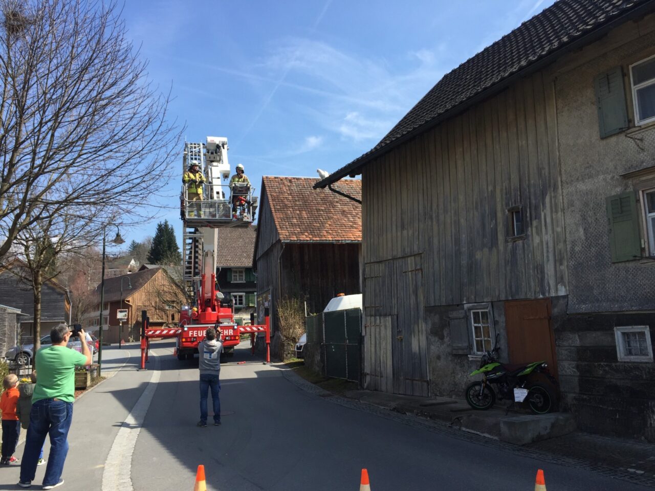Eine Katze kletterte auf ein Hausdach in der Kirchstraße. Da sie über den selben Weg nicht mehr nach unten kam wurden wir zur Unterstützung gerufen. Mittels Steiger und Schiebeleiter versuchten wir die Katze vom Dach zu holen. Der Katze war der Aufruhr Wohl nicht ganz geheuer und somit rettete sie sich mit einem beherzten Sprung kurzerhand selbst.