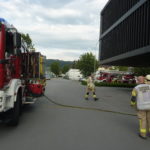 Ein Teil der Feuerwehr Lauterach ist dieses Wochenende außer Landes. Darum wurde die Feuerwehr Wolfurt Ersatzweise in den Alarmplan mit aufgenommen und war bei dieser Alarmierung mit dabei. Bei einem Bürogebäude löste der Gasalarm in einem Raum aus. Gemeinsam mit der Feuerwehr Lauterach wurde unter schwerem Atemschutz die Lage erkundet. Es konnte relativ rasch die Ursache gefunden werden, eine Undichtheit bei einer Klimaanlage ließ Kältemittel austreten. Nachdem der Raum belüftet wurde konnte die Einsatzstelle an einen Klimatechniker übergeben werden.