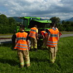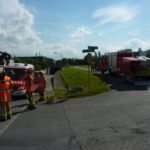 Ein technisches Gebrechen hat bei einem Traktor zum Verlust von Betriebsstoffen geführt. Die Einsatzleitung kontrollierte die Strecke und konnte einen Austritt des Kraftstoffes über eine längere Strecke feststellen. Uns erreichte dann die Information, dass wir durch das Landesstraßenbauamt unterstützt werden. Somit beschränkte sich unser Einsatz auf den Standort des defekten Fahrzeuges. Die Aufgabe war es den Verkehr zu regeln und den ausgetretenen Kraftstoff mittels Ölbindemittel aufzunehmen.