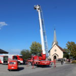 Die wundervolle Zeremonie, die durch Pfarrer Marius Dumea durchgeführt wurde, fand in der Pfarrkirche Buch statt. Nach der Trauung stand die Kameraden der Feuerwehr Spalier. Mit unserem Steiger wurde die Braut in die Höhe entführt. Michael stieg über die Leiter in den Korb auf und „rettete“ somit seine Braut.
