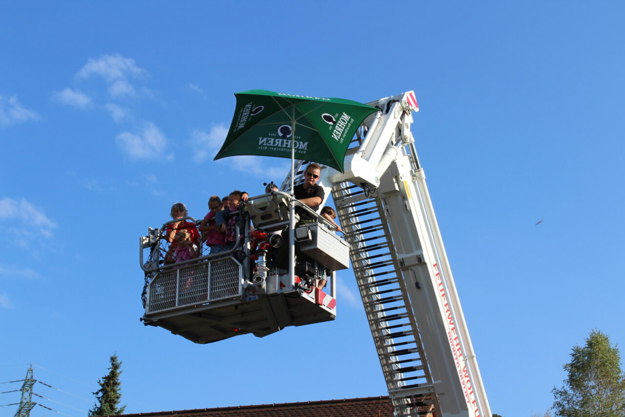 Genieß zuerst die tolle Aussicht über das herbstliche Wolfurt mit unserer kostenlosen Fahrt auf dem Steiger.