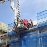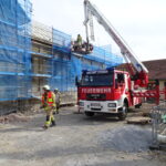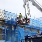 Ein Bauarbeiter stürzte auf einer Baustelle in Lauterach schwer und wurde mittels Steiger aus der Höhe schonend der Rettung übergeben.