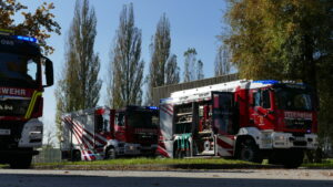 [GEBÄUDE VOLLBRAND] – so die Alarmierung am frühen Morgen. Von der Autobahn aus war ein sehr hoher Flammenschein ersichtlich, etliche Notrufe gingen in der Rettungs- und Feuerwehrleitstelle über die Notrufnummer 122 ein. Alle Notrufer haben richtig reagiert, denn der Anblick hätte auch einen tatsächlichen Vollbrand bedeuten können. Gemäß dem bei der RFL hinterlegten Alarmplan wurde dann auch die Feuerwehr Wolfurt, Bildstein und Bregenz-Stadt sowie die Polizei und das Rote Kreuz alarmiert.