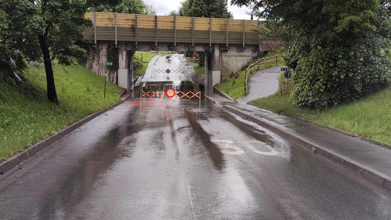 Durch den starken Niederschlag war die Eisenbahnunterführung in der Kesselstraße unter Wasser. Normalerweise werden durch die Leistungsstarken Pumpen die Unterführungen in kurzer Zeit vom Wasser befreit. Da dies aber nicht der Fall war kontrollierten wir die Schächte um auszuschließen, dass diese verstopft sind. Wir sperrten die Unterführung, damit keine Fahrzeuge steckenbleiben und beschädigt werden. Schlussendlich wurde durch die Feuerwehr ÖBB Infrastruktur der Entstörungsdienst alarmiert, da es zu einem Problem bei den Pumpen kam.