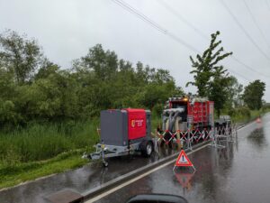 Wir wurden zur Unterstützung der Feuerwehr Hörbranz alarmiert. Unsere Mannschaft wurde mit Sandsäcken und Pumpen ausgestattet, um den Einsatzort zu unterstützen. Unsere Hauptaufgabe bestand darin, zwei überflutete Unterführungen auszupumpen, damit der Verkehrsweg wieder frei wurde und die Sicherheit für alle Verkehrsteilnehmer gewährleistet werden konnte.