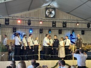 Am Sonntag nahmen wir an der Fahrzeugweihe in Bildstein und am anschließenden Festumzug teil. Dort wurde unser Sieg und das Goldene Strahlrohr gemeinsam mit vielen anderen Feuerwehren ausgiebig gefeiert.