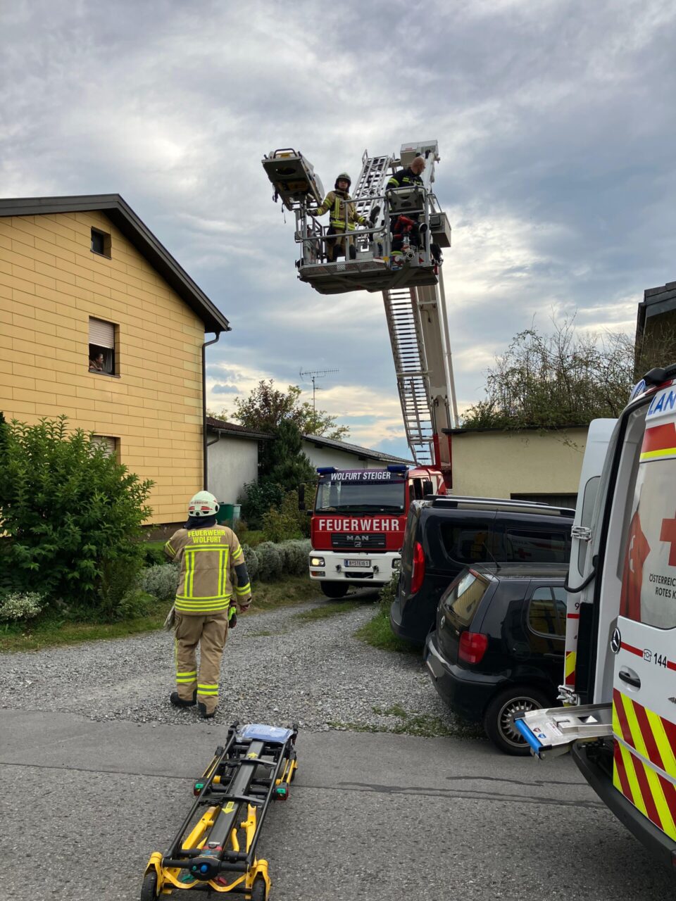 Um kurz nach 17:00 Uhr wurden wir vom Rettungsdienst nach Schwarzach zu einer Patientenbergung alarmiert. Die Patientin wurde bereits vom Rettungsdienst erstversorgt, während wir uns mit dem Steiger in Stellung brachten. Im Anschluss an die Versorgung durch den Rettungsdienst konnte die Patientin aus dem ersten Stock mithilfe des Steigers transportiert und am Boden wieder an den Rettungsdienst übergeben werden.