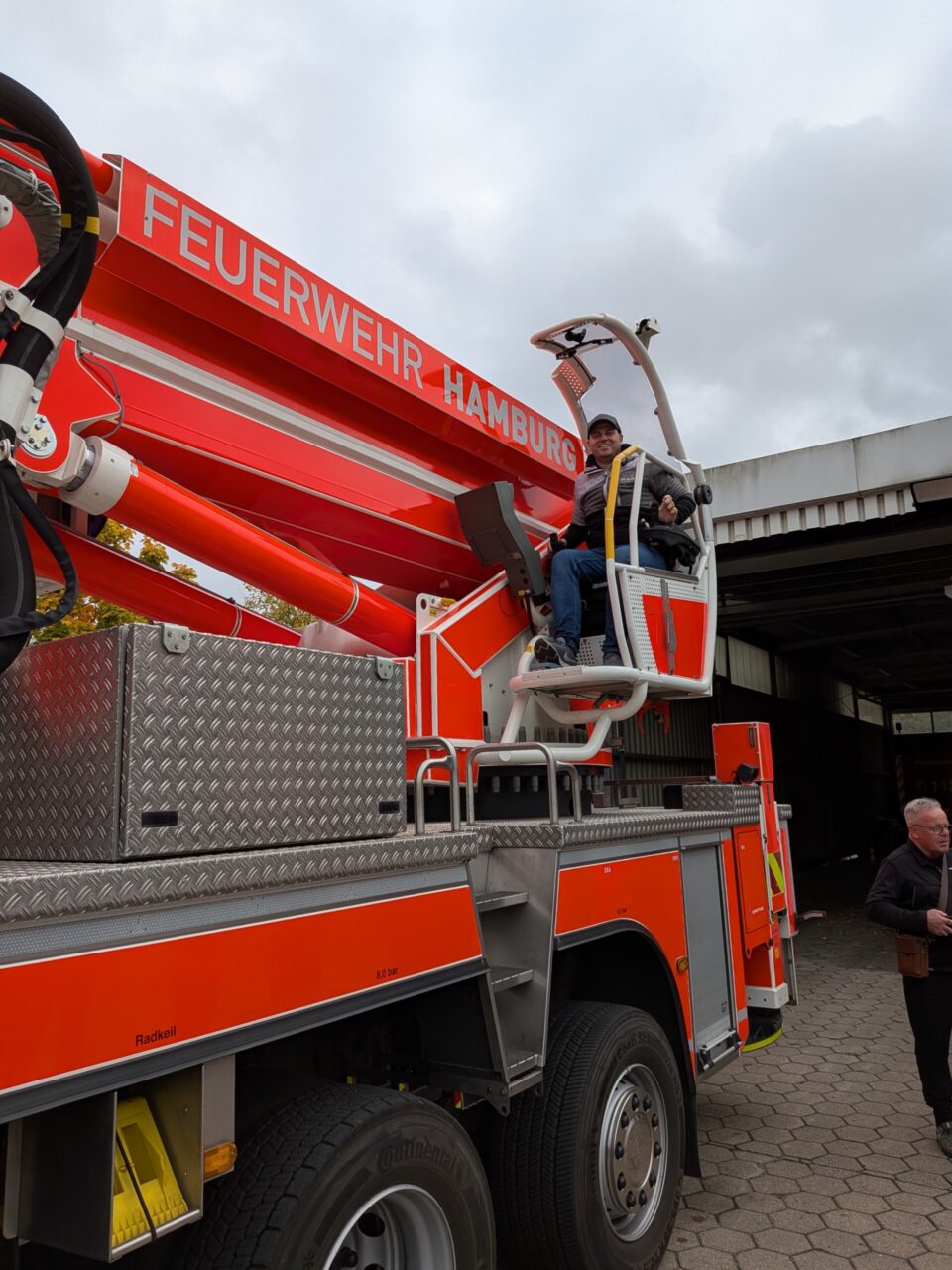 Am Nachmittag besuchten wir die Technische und Umweltschutzwache der Berufsfeuerwehr Hamburg. Dort erhielten wir einen spannenden Vortrag über den Chemieschutz und konnten einen Einblick in den umfangreichen Fuhrpark gewinnen. Besonders beeindruckend war die Besichtigung des 70-Meter-Steigers, der selbst bei erfahrenen Feuerwehrleuten für Staunen sorgte.