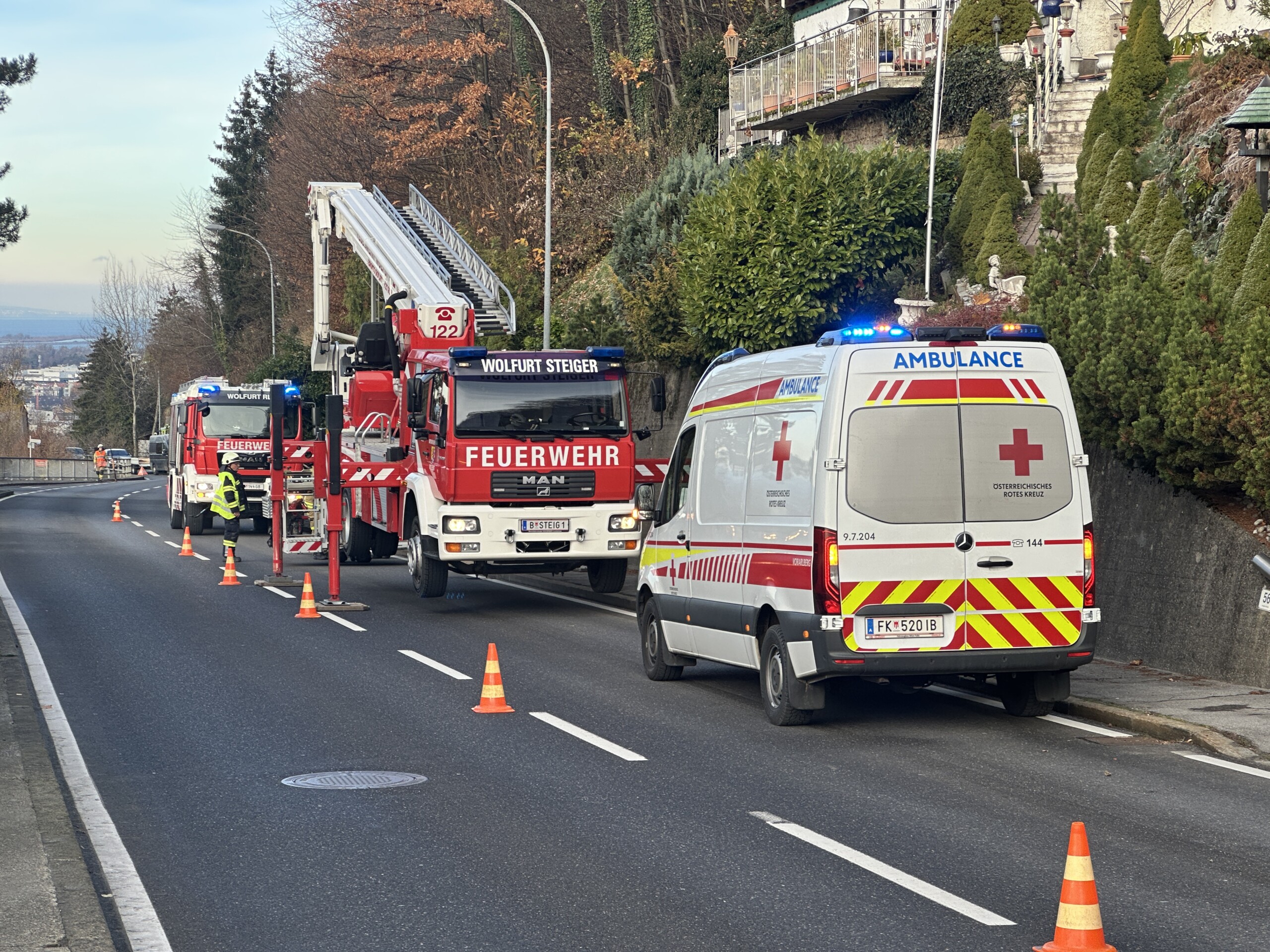 Die Patientin konnte mithilfe des Steigers schonend vom höhergelegenen Gebäude, das sich in Hanglage befindet, hinunter auf die Straße transportiert und anschließend dem Rettungsdienst übergeben werden.