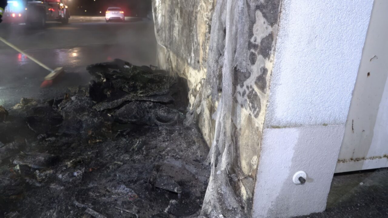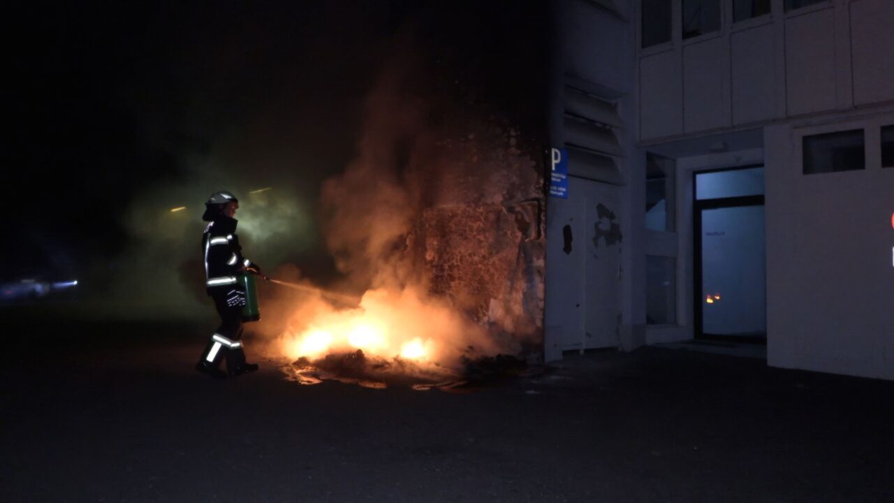 In der Nacht auf Sonntag wurden wir zu einem Fassadenbrand alarmiert. Vermutlich wurde dieser durch Brandstiftung an den vor dem Gebäude abgestellten Papiercontainern verursacht.