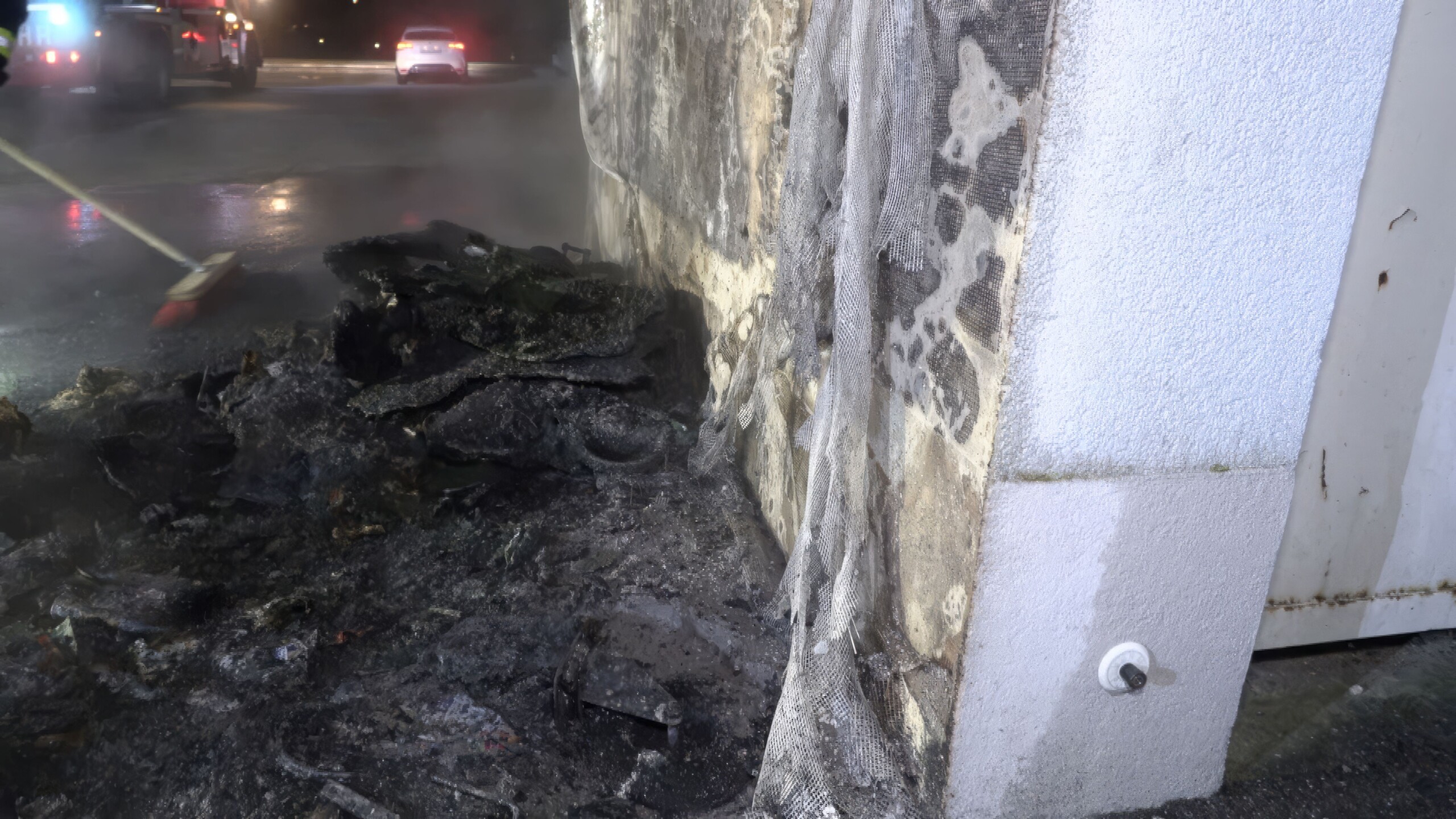 In der Nacht auf Sonntag wurden wir zu einem Fassadenbrand alarmiert. Vermutlich wurde dieser durch Brandstiftung an den vor dem Gebäude abgestellten Papiercontainern verursacht.