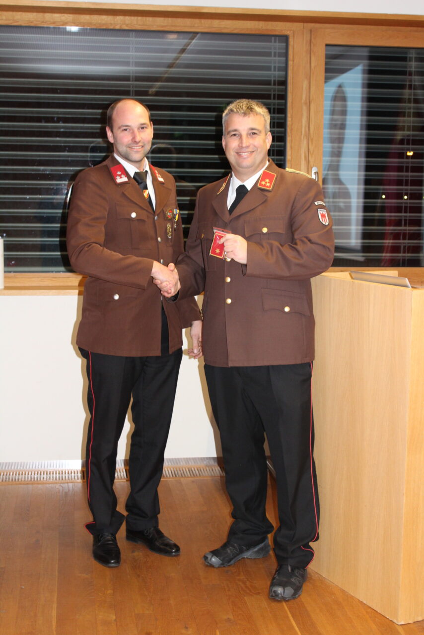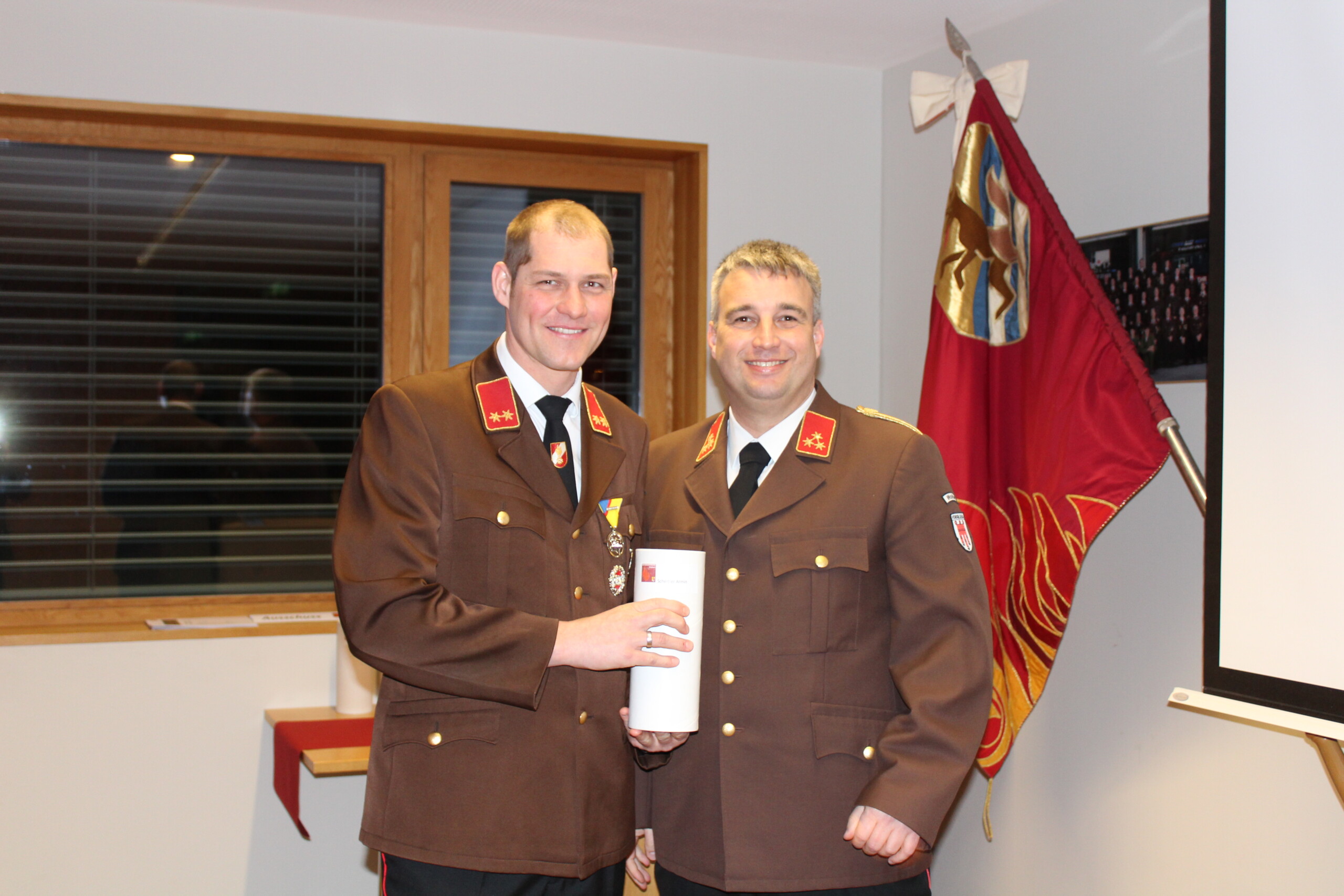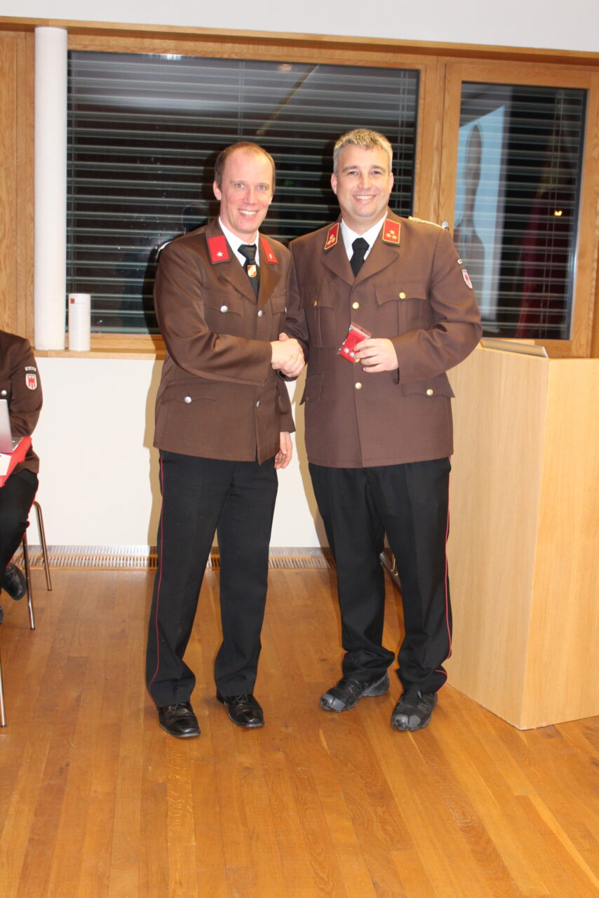 Zum Abschluss bedankte sich Kommandant Battlogg bei seinem Stellvertreter Armin Schertler, dem Ausschuss, allen Funktionsträgern sowie der gesamten Mannschaft für den großen Einsatz im vergangenen Jahr. Auch der Gemeinde, dem Landesfeuerwehrverband, der Polizei und dem Roten Kreuz galt sein besonderer Dank.