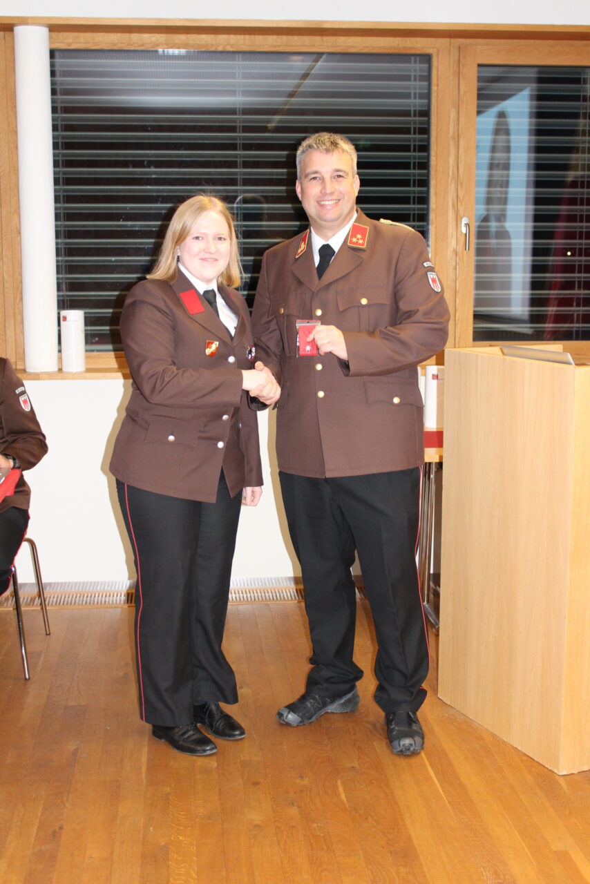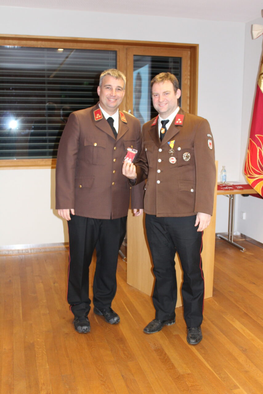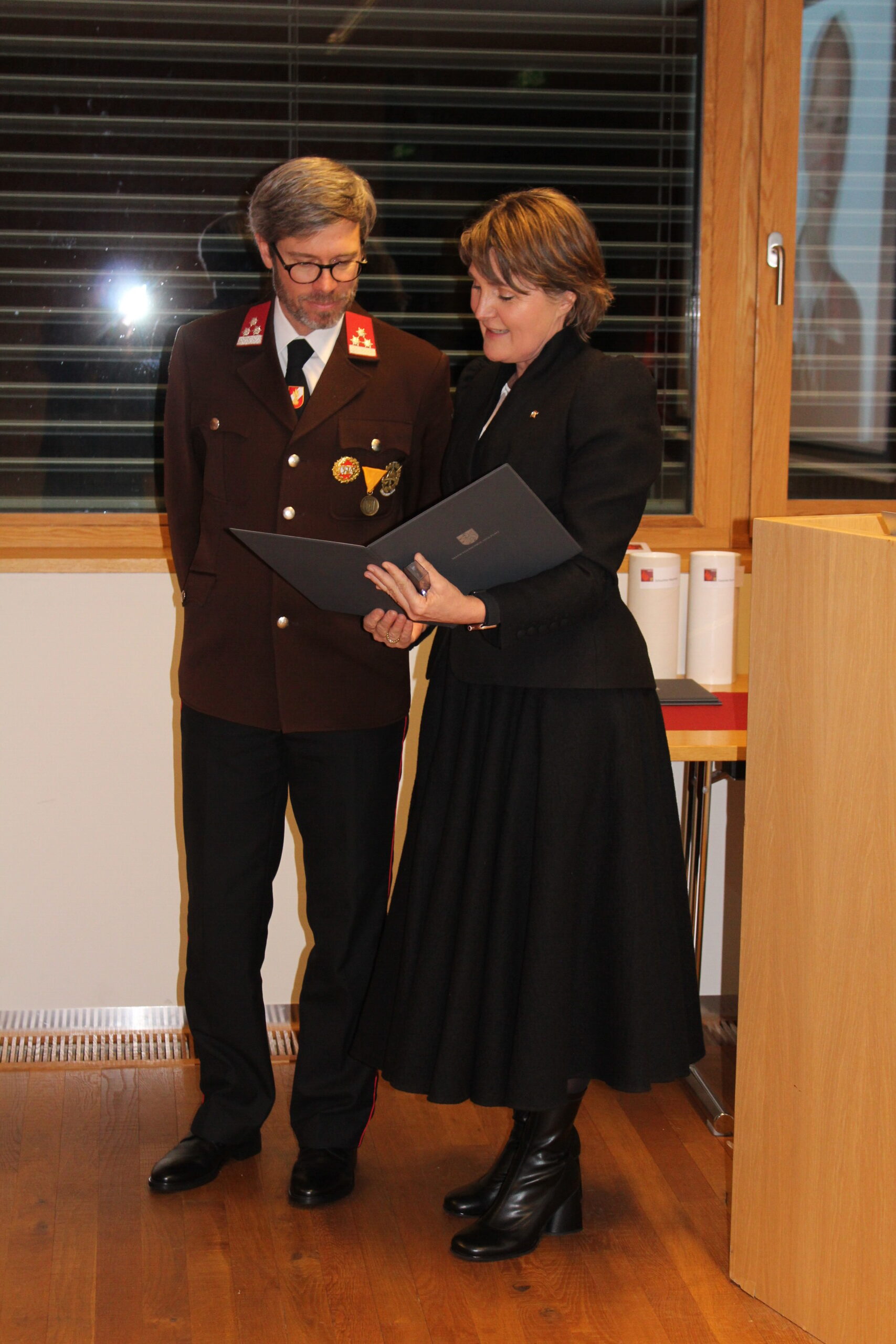Zum Abschluss bedankte sich Kommandant Battlogg bei seinem Stellvertreter Armin Schertler, dem Ausschuss, allen Funktionsträgern sowie der gesamten Mannschaft für den großen Einsatz im vergangenen Jahr. Auch der Gemeinde, dem Landesfeuerwehrverband, der Polizei und dem Roten Kreuz galt sein besonderer Dank.