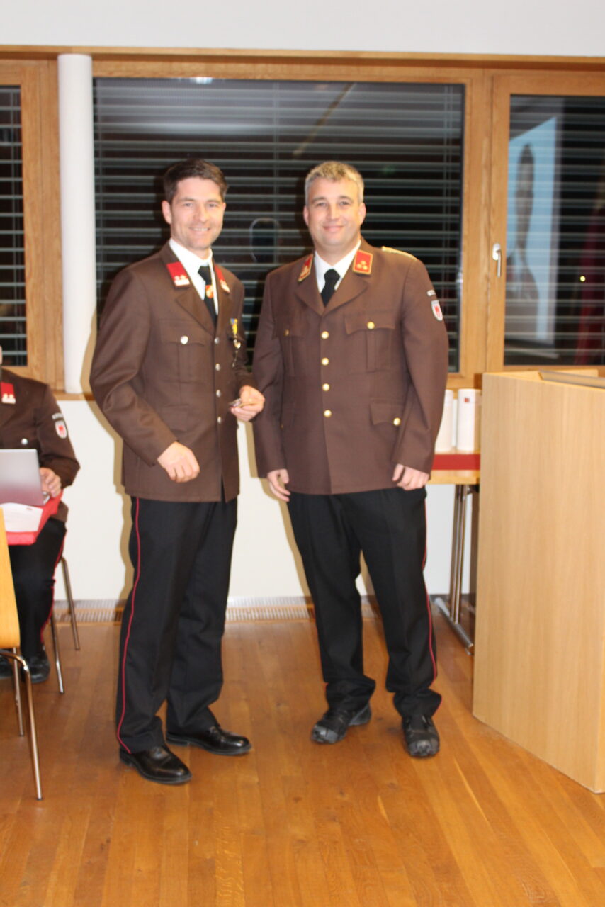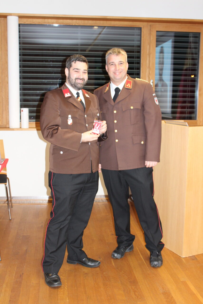 Für drei Verdiente Kameraden wurde die Auszeichnung der Gemeinde für ihr langjähriges Engagement und ihre prägenden Beiträge zur Entwicklung der Feuerwehr Wolfurt mit dem bronzenen Vereinsehrenzeichen durchgeführt.