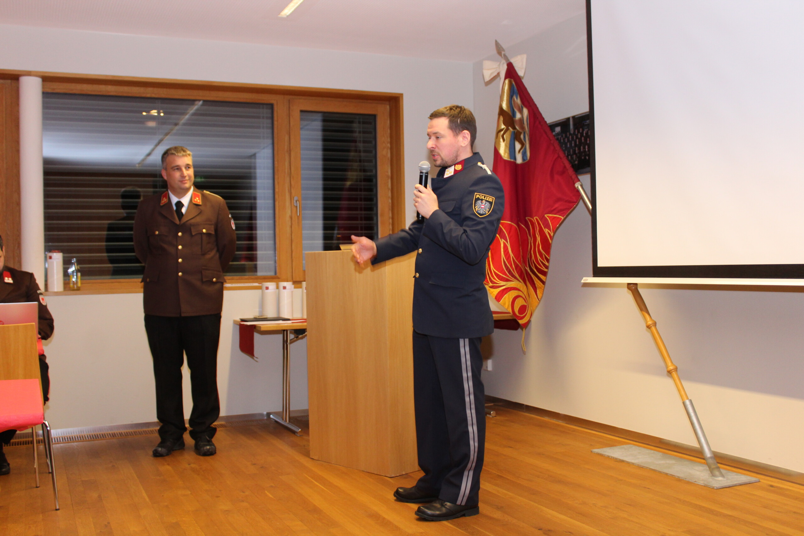 Christian Kaar von der Polizei Wolfurt gratulierte besonders zu den sportlichen Erfolgen und lobte die Jugendarbeit mit einem augenzwinkernden Vergleich. Er unterstrich die gute Zusammenarbeit zwischen Polizei und Feuerwehr und wünschte allen, stets gesund von Einsätzen zurückzukehren.