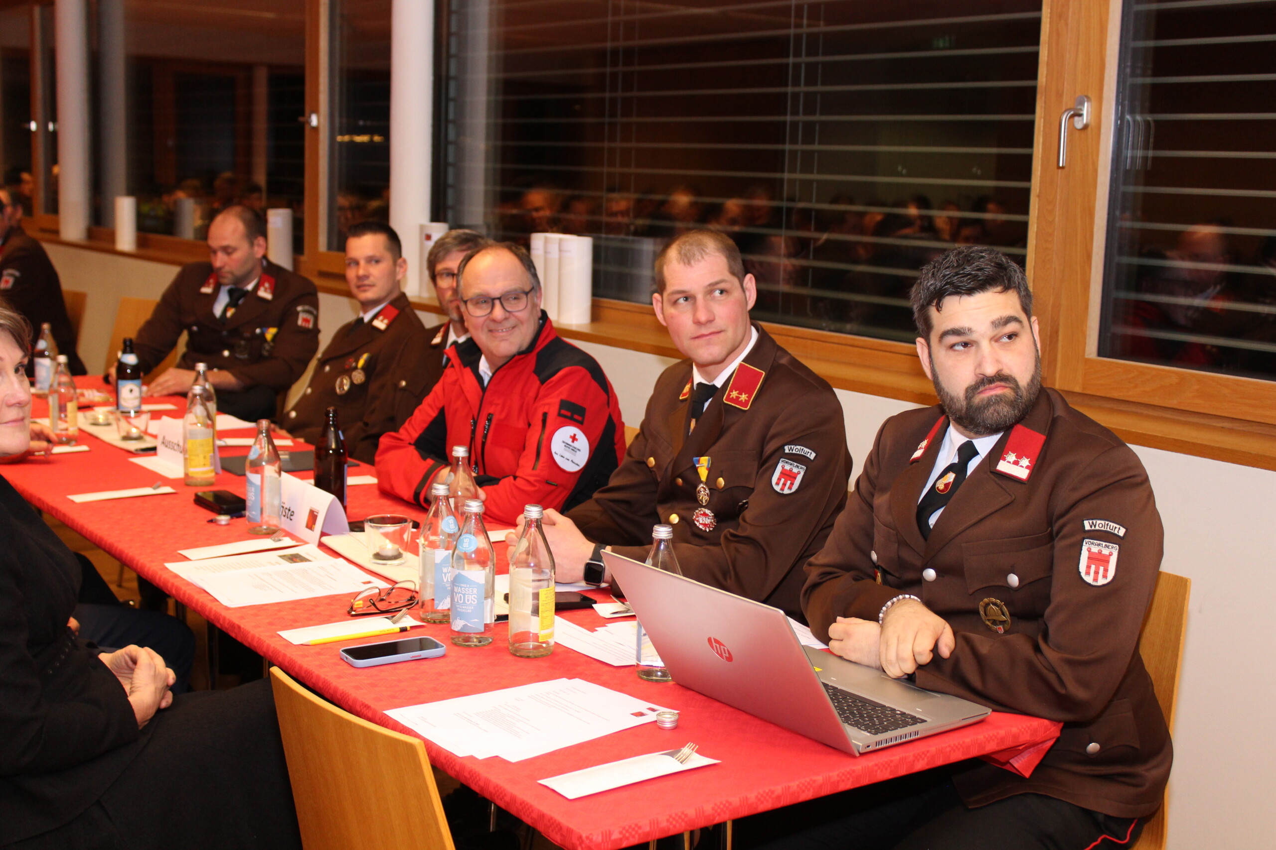 Kommandant Johannes Battlogg eröffnete die Sitzung und hieß die Anwesenden herzlich willkommen. Besonders erfreulich war die Anwesenheit zahlreicher Ehrengäste, darunter: