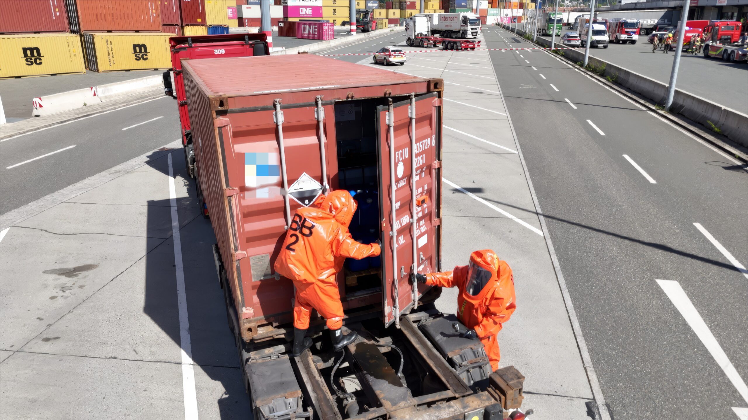 Nach Abschluss der Maßnahmen wurde der Container durch die zuständige Fachfirma übernommen und zur weiteren Behandlung abtransportiert.