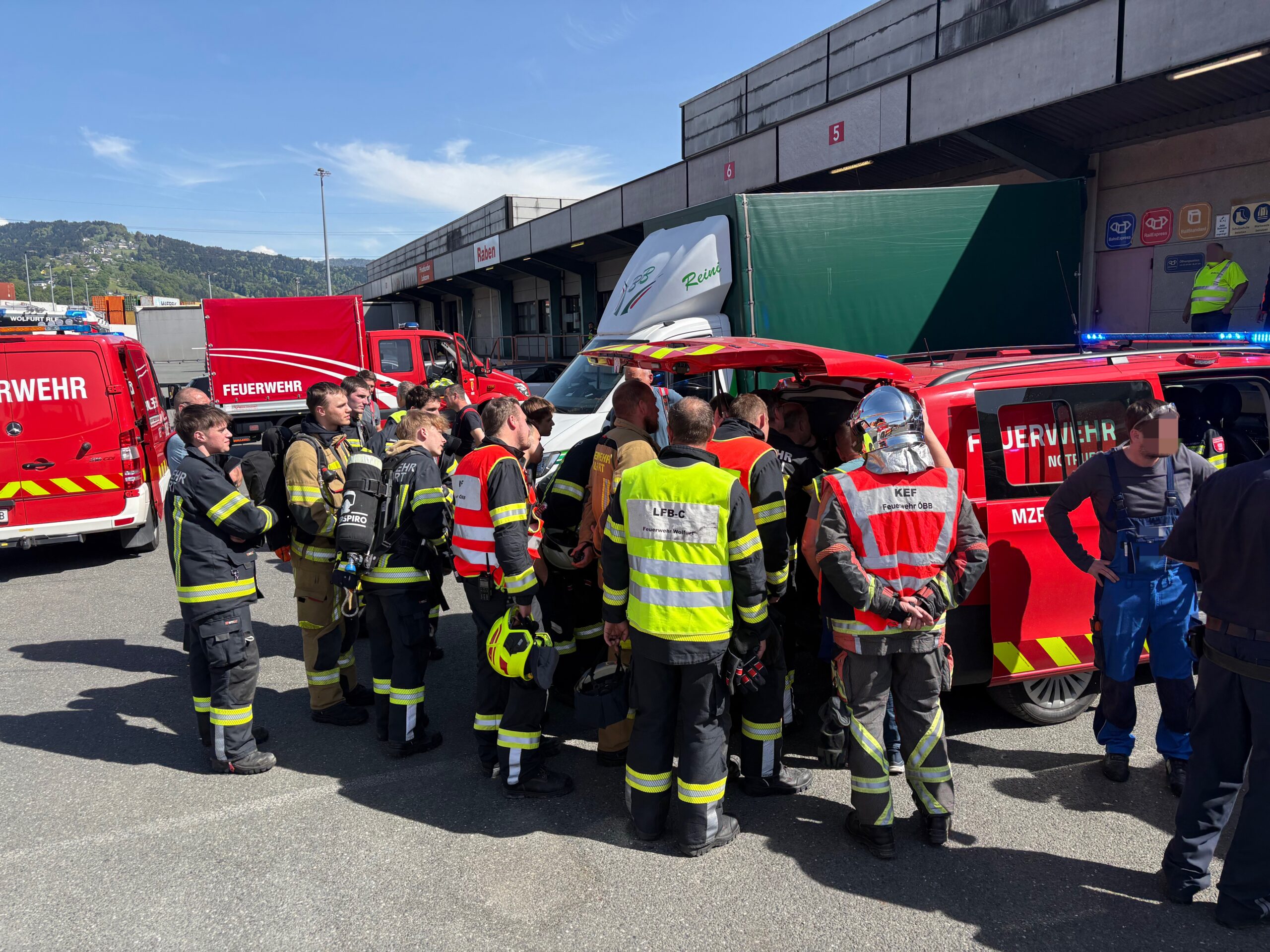 Am Montagnachmittag wurde die Feuerwehr Wolfurt zu einem möglichen Gefahrguteinsatz im Bereich des Güterbahnhofs Wolfurt alarmiert. Grund dafür war ein gemeldeter Stoffaustritt aus einem See-Container.
