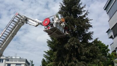 Wir wurden nach Lauterach gerufen, da sich ein Bienenschwarm auf einem Baum niedergelassen hatte. Auf normalem Weg war ein sicherer Zugang nicht…