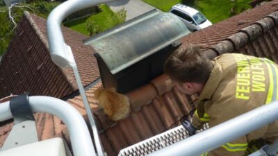 Die Feuerwehr wurde zu einem Einsatz gerufen. Eine Katze saß auf einem Dach fest und konnte nicht mehr selbstständig herunter. Die Feuerwehr…