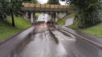 Durch den starken Niederschlag war die Eisenbahnunterführung in der Kesselstraße unter Wasser. Normalerweise werden durch die Leistungsstarken Pumpen die Unterführungen…