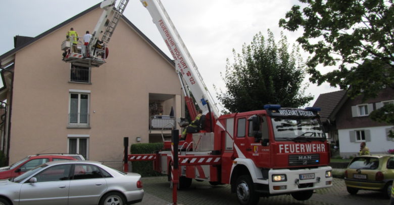 Der Notarzt forderte zur Unterstützung bei der Rettung eines Patienten vom Dach die Feuerwehr Wolfurt mit der Teleskopmastbühne an. Die…