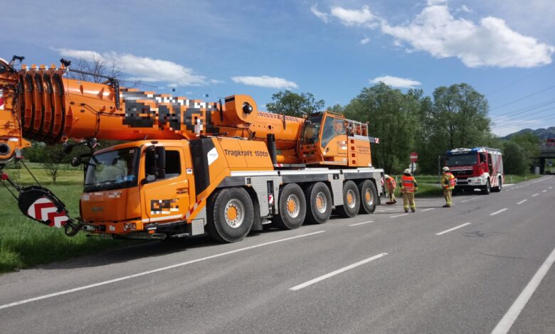 Durch einen technischen Defekt eines Mobilkrans verlor dieser Getriebeöl. Wir haben das Öl gebunden und die Straße gereinigt.