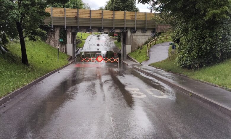 Durch den starken Niederschlag war die Eisenbahnunterführung in der Kesselstraße unter Wasser. Normalerweise werden durch die Leistungsstarken Pumpen die Unterführungen…