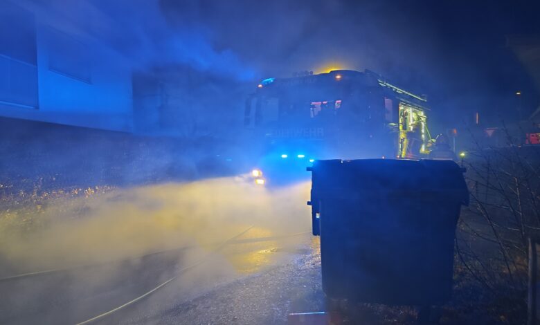 Eine Brandentwicklung im Bereich eines Müllcontainers lies in kurzer Zeit die gesamte Müllsammelstelle brennen. Rauch und Flammenschein waren von Weitem…