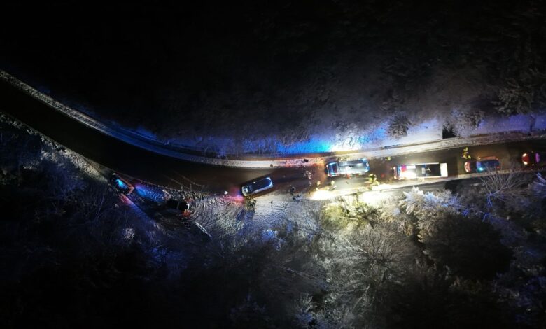 Auf der Bucherstraße ereignete sich ein schwerer Verkehrsunfall. Ein Fahrzeug kam von der Fahrbahn ab, stürzte in ein steiles Tobel…