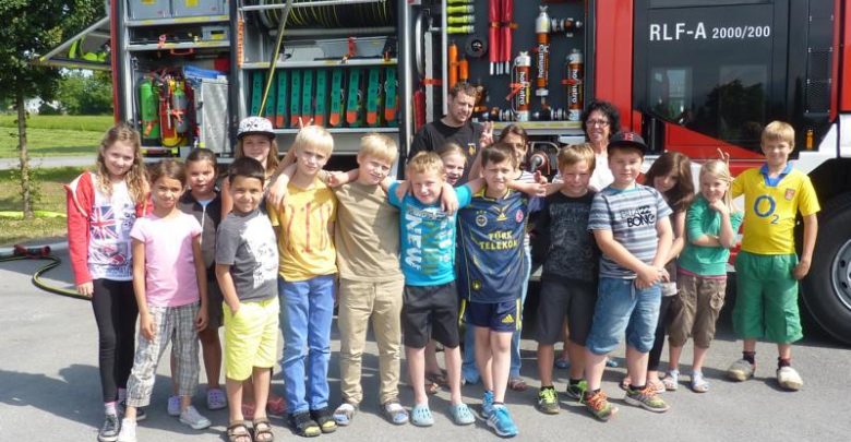 Eine dritte Klasse der Volksschule Mähdle konnte am Dienstag den 17.06.2014 hautnah miterleben was ihr „Nachbar“ die Feuerwehr alles zu…
