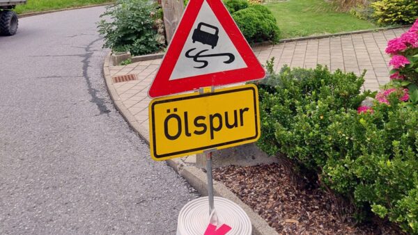 Mittels Ölbindemittel wurde das Öl gebunden und mit Wasser und Bioversal anschließend die Straße gereinigt.
