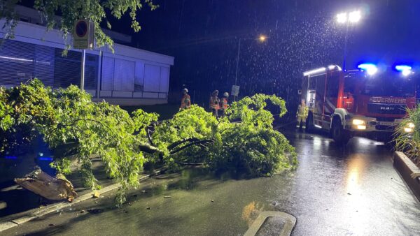 Ein durch den starken Wind herabgefallenen Ast eines Baumes ragte auf die Straße. Dieser wurde von uns mittels Kettensäge zerkleinert…